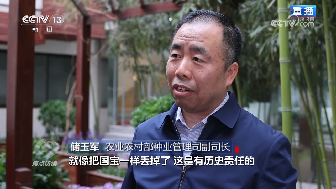 農(nóng)業(yè)農(nóng)村部種業(yè)管理司副司長(zhǎng)儲(chǔ)玉軍:“國(guó)家?guī)焓菄?guó)之重器,種質(zhì)資源安全黨中央國(guó)務(wù)院高度重視,如果不及時(shí)收集,喪失掉,就像把國(guó)寶丟掉了,這是有歷史責(zé)任的,所以早一天抓,早一天見(jiàn)效,早一天把它放在庫(kù)里才能安心。要把種源安全提升到關(guān)系國(guó)家安全的戰(zhàn)略高度,抓好種業(yè)振興,服務(wù)保障國(guó)家糧食安全?!?/p>