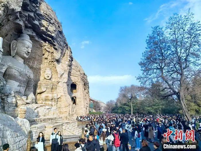 清明假期云岡石窟人山人海。中新網記者 李金磊 攝