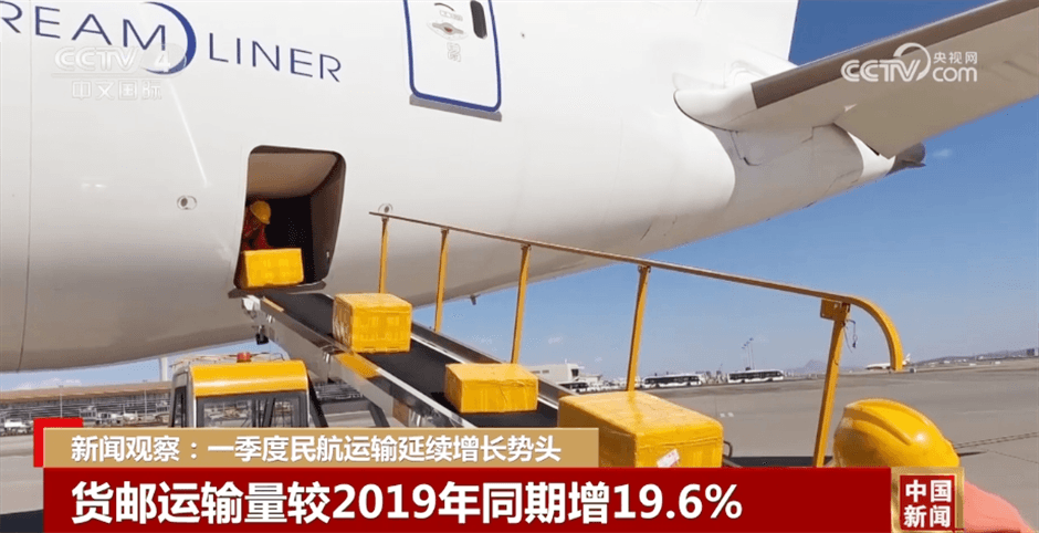 貨運方面,全行業(yè)一季度共完成貨郵運輸量200.7萬噸,為歷年一季度貨運量最高值,同比增長34.4%,較2019年同期增長19.6%。其中,國內(nèi)航線較2019年同期增長8.2%,國際航線較2019年同期增長43.6%。