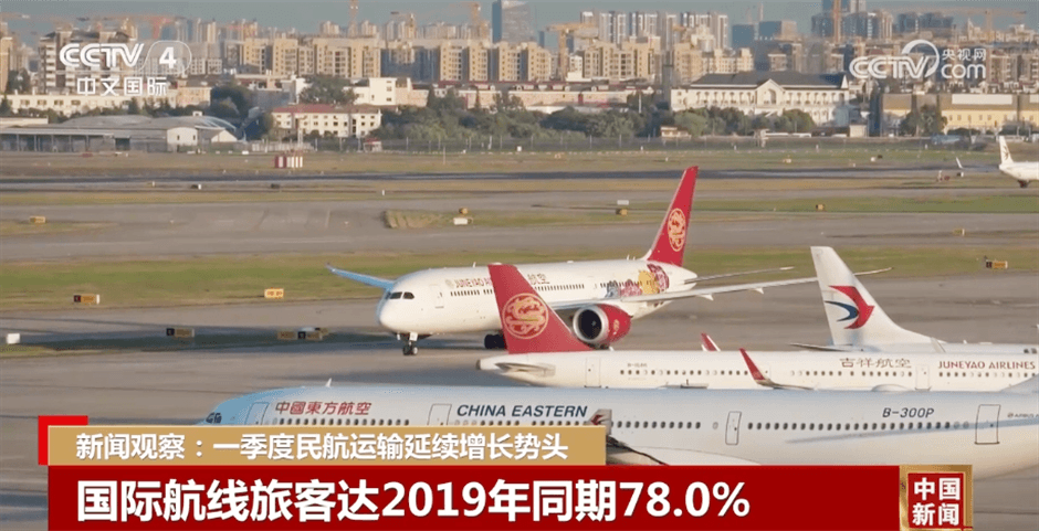 客運方面,全行業(yè)一季度共完成旅客運輸量接近1.8億人次,為歷年一季度客運量最高值,同比增長37.7%,較2019年同期增長10.2%。其中,國內(nèi)航線完成1.6億人次,規(guī)模較2019年同期增長14.3%;國際航線完成1412.0萬人次,規(guī)?;謴?fù)至2019年同期的78.0%。