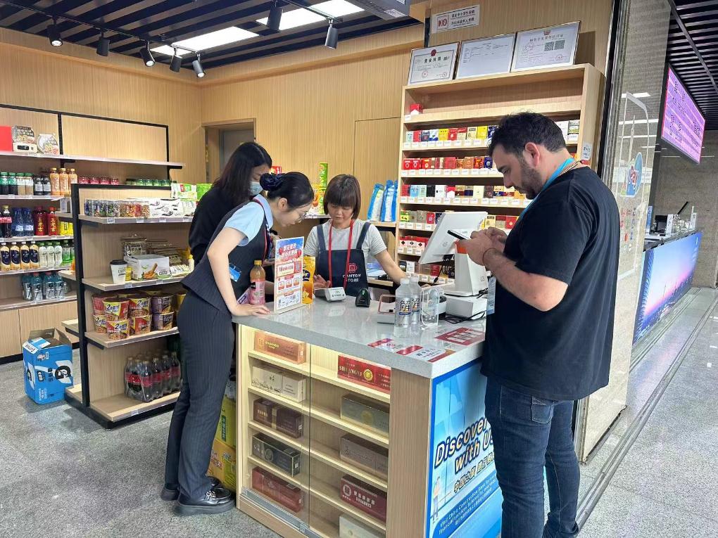 場館外,支付便利化措施早已全方位鋪開。從入境廣州開始,白云國際機場的醒目位置設(shè)有境外來賓支付服務(wù)咨詢臺,多語種宣傳相關(guān)政策,現(xiàn)場指引入境人員開通電子支付。“我們引導商鋪支持使用帶有Visa、Master、美國運通等標識的國際標準化信用卡,機場商鋪外卡POS機做到至少‘一鋪一臺’?!睆V州市商務(wù)局相關(guān)負責人介紹。