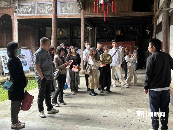 依山而建、傍水而居,位于磐安的櫸溪村又帶給臺青們另一幅鄉(xiāng)村畫卷,古樸宏偉的孔氏家廟,村落沿著溪流和山坡緩緩延伸,這里是江南地區(qū)一支孔子后裔聚集地?!斑@里每一條巷子里都能感覺到悠久的歷史氣息。”一路上臺青們不停地拿起手機打卡留念。