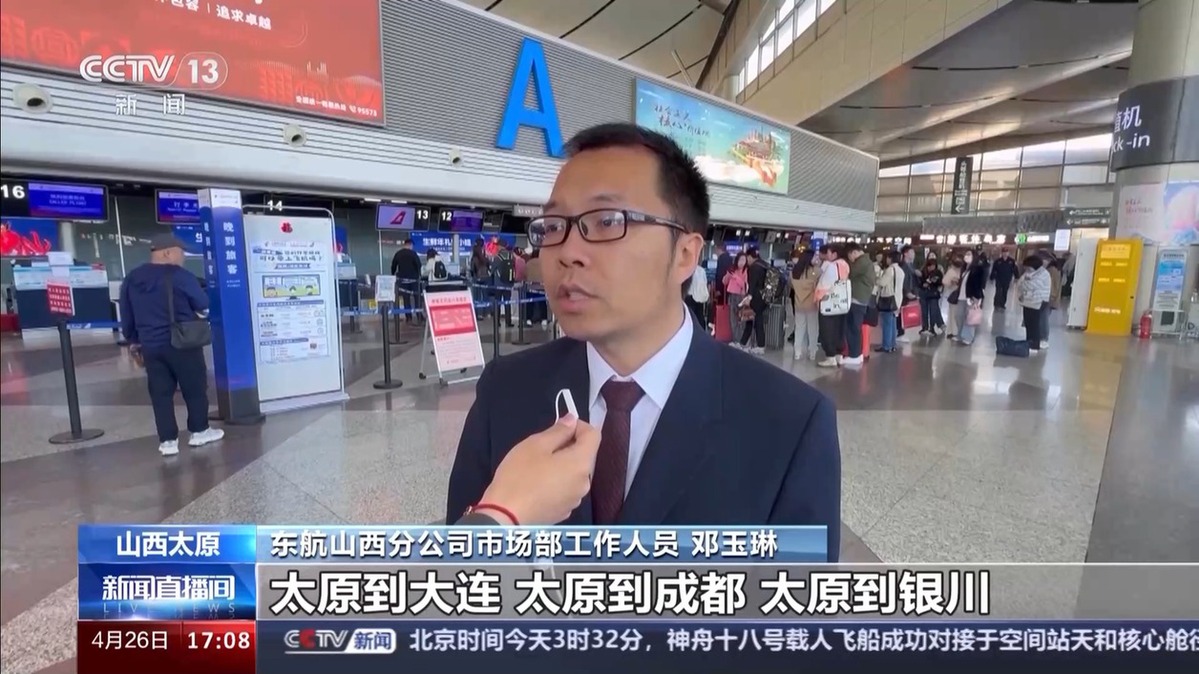 東航山西分公司市場(chǎng)部工作人員鄧玉琳 :從目前航班的運(yùn)力情況來(lái)看,太原到大連,太原到成都,太原到銀川,太原到重慶、寧波這些城市,整個(gè)五一期間的預(yù)訂情況是比較好的。主要的到達(dá)目的地涉及國(guó)內(nèi)30余個(gè)大中小城市,還有兩個(gè)國(guó)際和地區(qū)航點(diǎn)。目前整體的運(yùn)力投入,能夠極大地滿足和方便廣大旅客的“五一”出行需求。