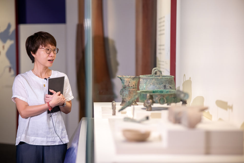 策劃、研究、選品,一年的密切合作為展覽注入巧思:展覽兼具學術(shù)性與教育性,部分內(nèi)容特意參考香港中學歷史教材;入選文物涉及多家機構(gòu),各單位經(jīng)過一番努力才安排好赴港檔期;克服燈光場地等困難,河南團隊還首次為體量龐大的春秋九鼎八簋九鬲拍攝整體大合影,以豐富圖片資料……
