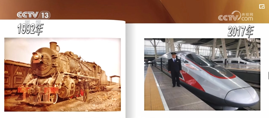 這張稍顯模糊的老照片是1992年,韓軍甲剛參加工作時拍下的。他身邊的蒸汽機(jī)車當(dāng)時的運行時速一般只能開到50公里左右,這個風(fēng)華正茂的年輕人從未設(shè)想過,20多年后的2017年,他能駕駛時速350公里的復(fù)興號列車。