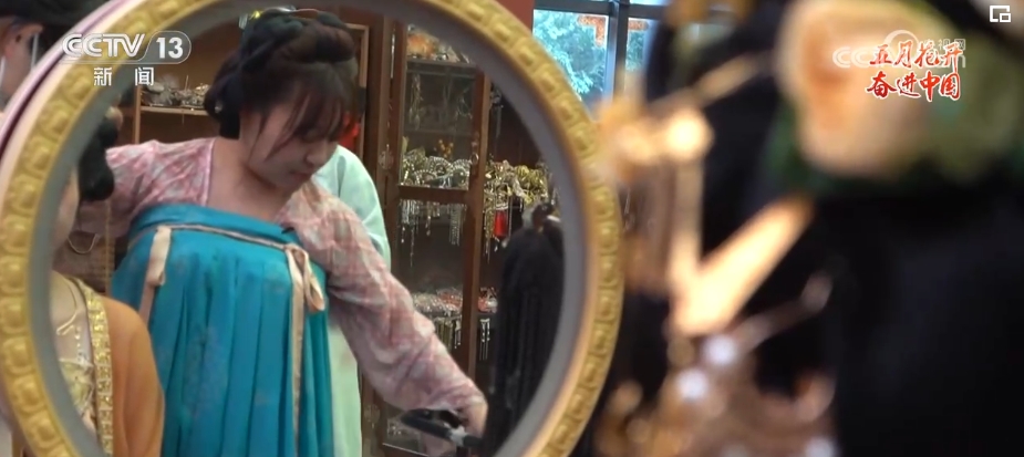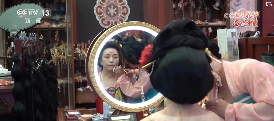 在陜西西安,有這樣一位年輕人,她仿佛擁有一種復(fù)刻舊時光的魔力。敷粉、畫眉、點唇,穿上漢服、戴上發(fā)飾,不到1個小時,一個現(xiàn)代的女孩就穿越回了漢唐。“00后”漢服妝造師胡芯銀,讓今人和古人在裝束上相逢。