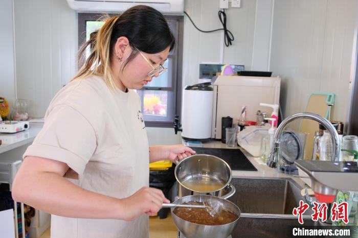 與此同時(shí),她還將臺(tái)灣茶葉和象山“紅美人”柑橘結(jié)合,研制出“橘子茶凍”這一新飲品,“因?yàn)槲覀兿M麑⑦@里打造成兩岸青年的家,未來我也會(huì)繼續(xù)尋找兩地的結(jié)合點(diǎn),讓更多人感受‘萬象山?!溃矠榕_(tái)灣朋友走進(jìn)大陸提供一個(gè)小小的平臺(tái)”。