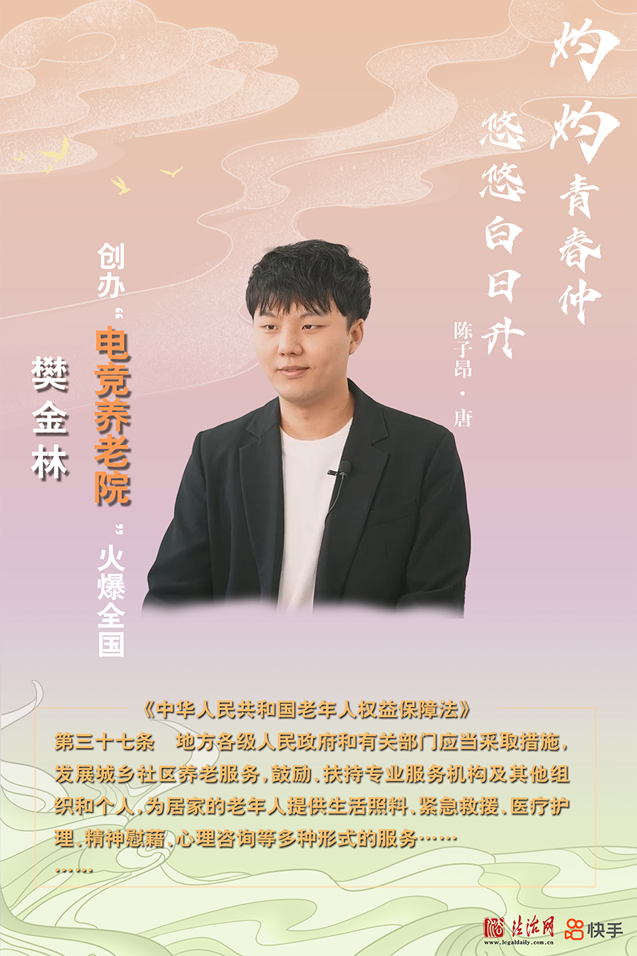 1997年出生的河南小伙樊金林(藝名:林燒)在河南省許昌市經(jīng)營(yíng)了中國(guó)首個(gè)“電競(jìng)養(yǎng)老院”。他把年輕人里流行的電競(jìng)、蹦迪、桌游等帶進(jìn)養(yǎng)老院,還帶老人們一起拍攝短視頻,通過(guò)在社交平臺(tái)記錄他們?nèi)粘I畹狞c(diǎn)滴,讓越來(lái)越多的人了解到“原來(lái)老年生活還可以這樣有趣”。