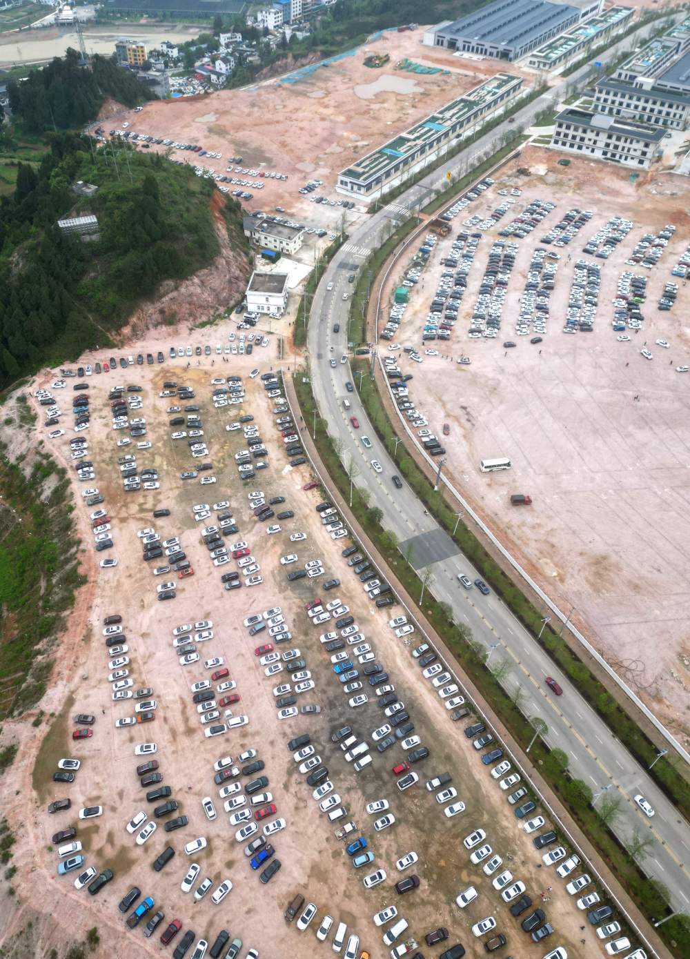 5月1日,游客車輛在貴州省黔東南苗族侗族自治州臺(tái)江縣臺(tái)盤村停車(無人機(jī)照片)。為了滿足外地游客觀看“村BA”的需求,當(dāng)?shù)乩瞄e置空地規(guī)劃設(shè)置免費(fèi)臨時(shí)停車場,增加車位7000余個(gè),供游客免費(fèi)停車。新華社發(fā)(余天英 攝)
