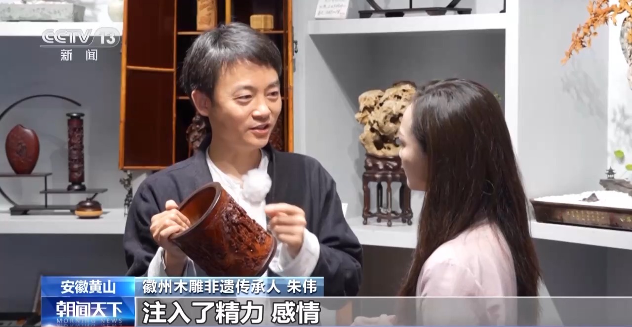 徽州木雕非遺傳承人 朱偉:一件作品從穿短袖刻到穿棉襖,又從穿棉襖刻到穿短袖,春夏秋冬,注入了精力、感情,是有生命力的。