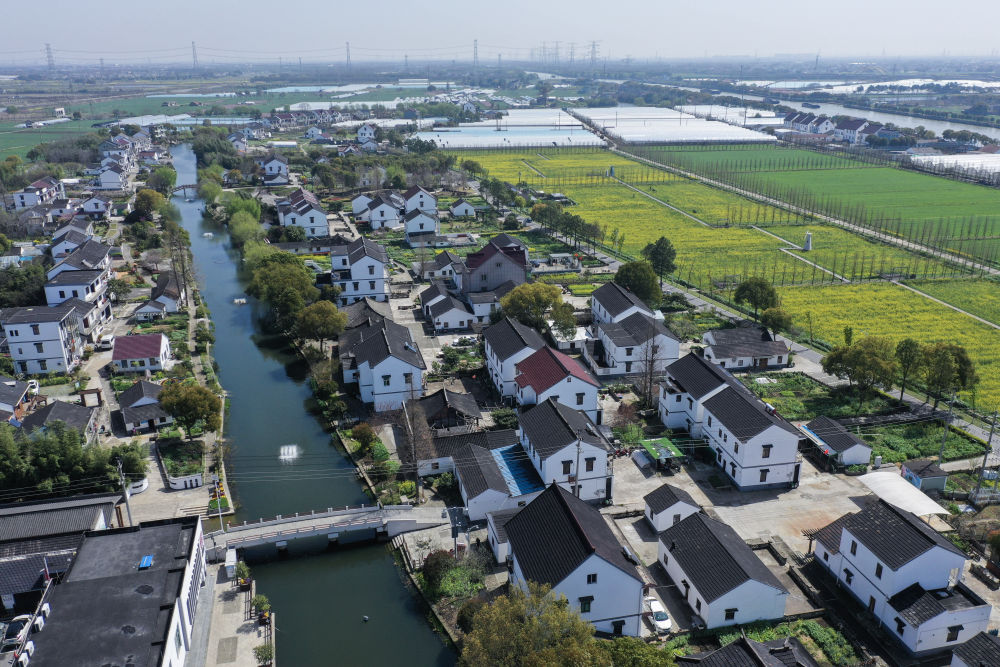 這是浙江省嘉興市嘉善縣姚莊鎮(zhèn)橫港村景色(2024年3月29日攝,無(wú)人機(jī)照片)。新華社記者 徐昱 攝