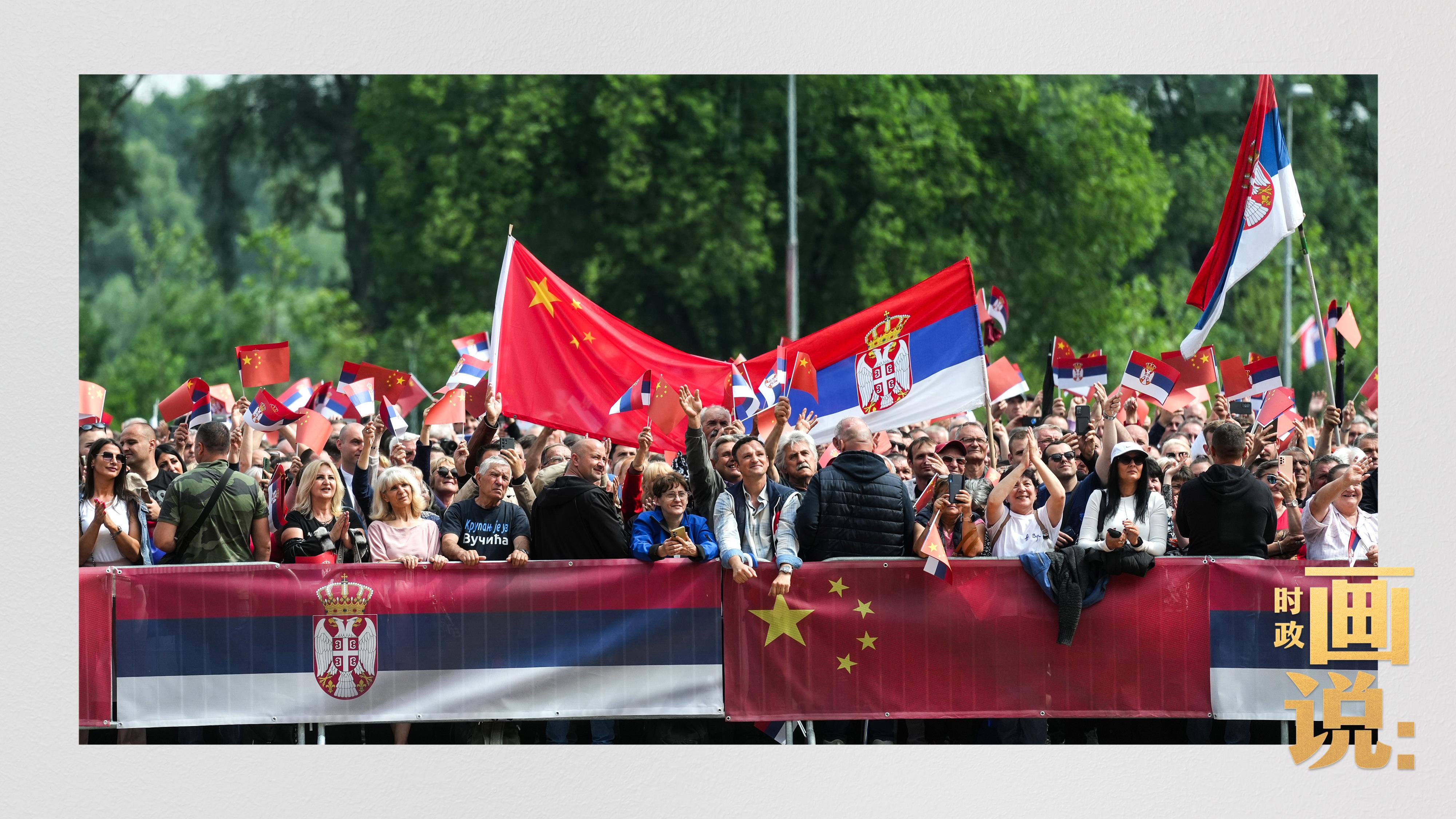 8日上午,武契奇總統(tǒng)在塞爾維亞大廈前廣場(chǎng)舉行隆重歡迎儀式,歡迎習(xí)近平主席。廣場(chǎng)前不少當(dāng)?shù)孛癖姄]舞國(guó)旗,高舉雙臂熱烈迎接遠(yuǎn)道而來(lái)的中國(guó)貴賓!