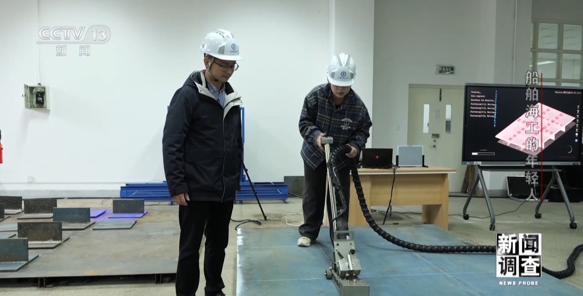 上海外高橋造船有限公司精度技術(shù)部副部長(zhǎng) 孫建志:我們做了大量的實(shí)驗(yàn),根據(jù)不同的變形用不同的辦法,看它的矯平的效果,