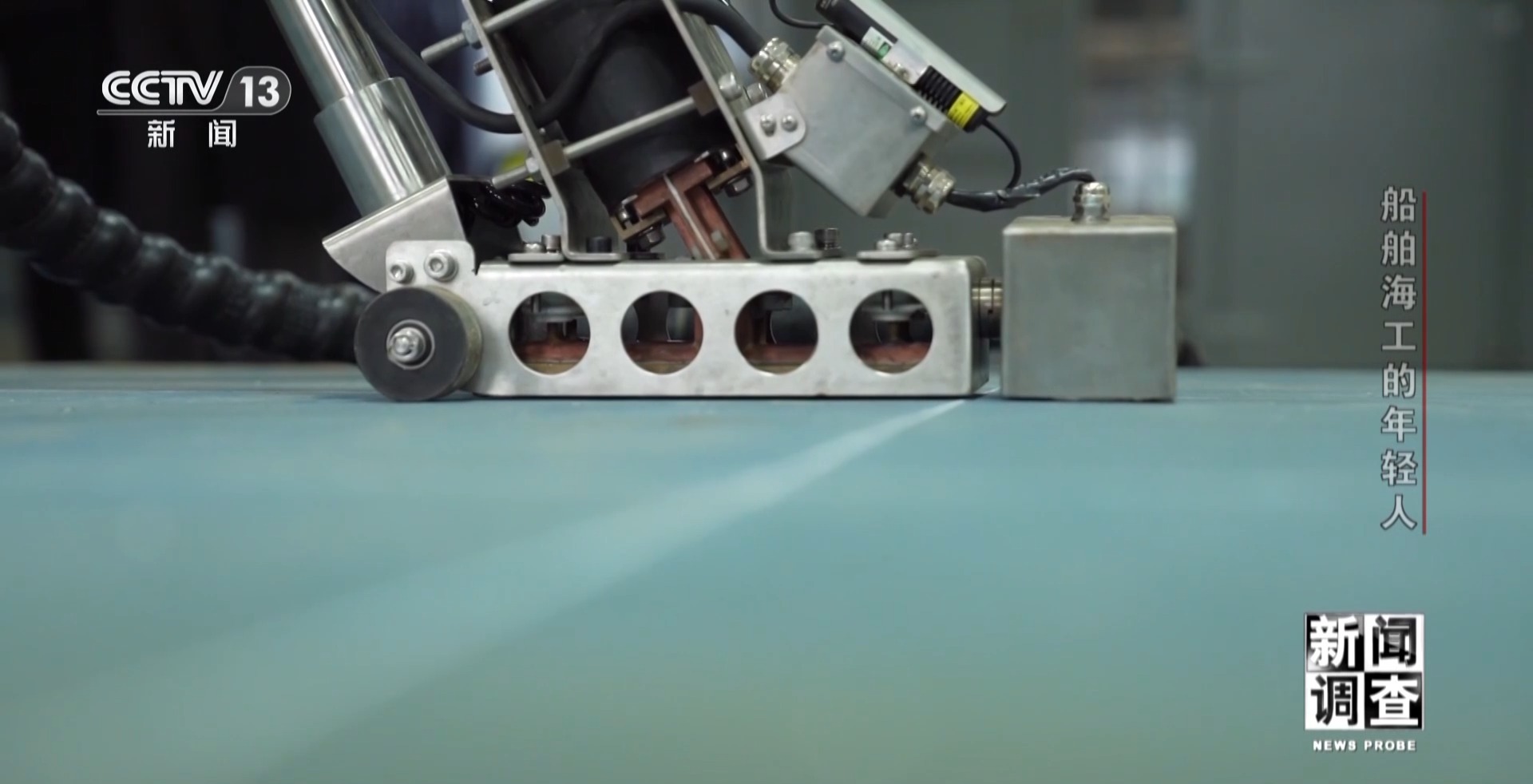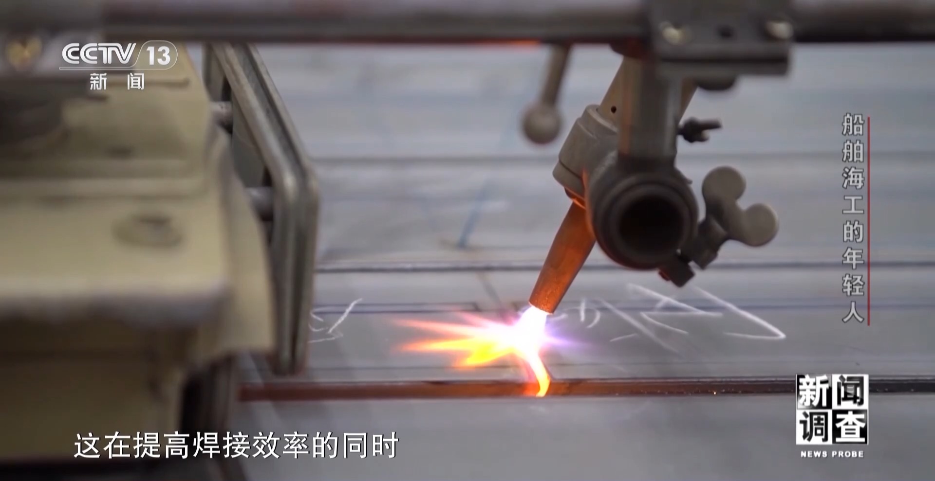 江蘇大洋海洋裝備有限公司技能大師工作室主任 孫玉龍:這個(gè)板子比較特殊,它是EH690鋼,硬度比較高,板厚也比較厚。想把它焊合格是很難的,兩個(gè)人要焊一天。焊不好它會(huì)產(chǎn)生內(nèi)部缺陷,比如說(shuō)氣孔、裂紋等一系列的缺陷在里面。
