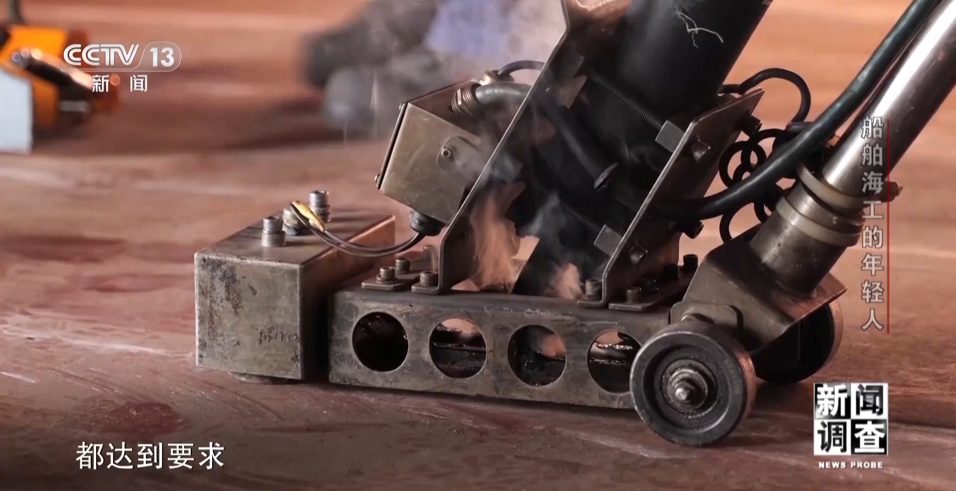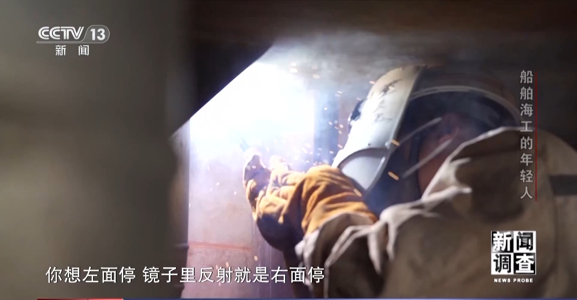江蘇大洋海洋裝備有限公司技能大師工作室主任 孫玉龍:那時(shí)候,我們焊的時(shí)候手上面都綁了鋼筋,把它折彎了負(fù)重,綁在手腕上面舉著。