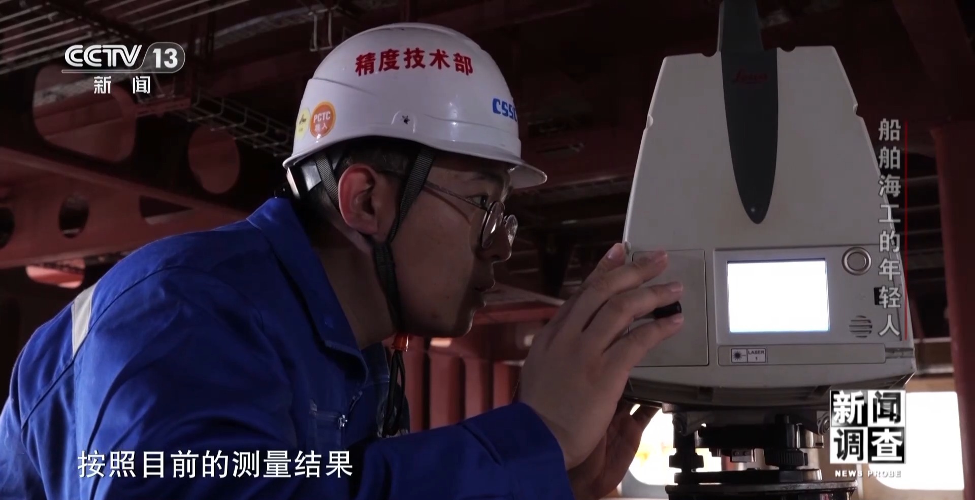 上海外高橋造船有限公司精度技術(shù)部副部長(zhǎng) 孫建志:這個(gè)總段是典型的薄板結(jié)構(gòu),不平程度在正負(fù)15毫米之內(nèi)。所有的變形都是熱的影響,熱輸入以后就會(huì)產(chǎn)生殘余應(yīng)力,一些不均衡導(dǎo)致這些變形。尤其是薄板結(jié)構(gòu)更明顯,現(xiàn)在2號(hào)船的整體的平整度應(yīng)該相對(duì)1號(hào)船已經(jīng)好很多了。