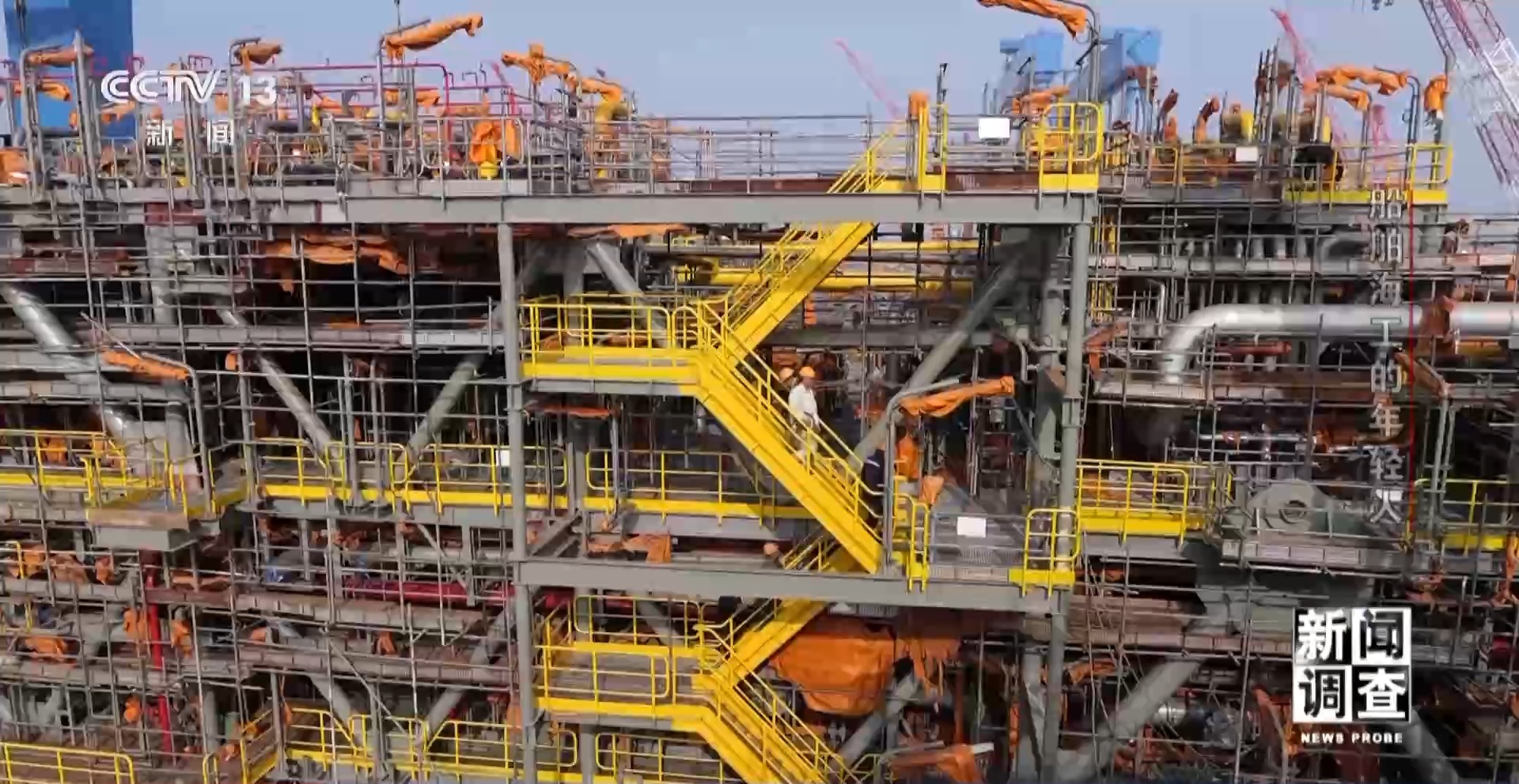 孫博文是啟東中遠(yuǎn)海運(yùn)海洋工程有限公司科技創(chuàng)新室的負(fù)責(zé)人,他帶記者登上了一個(gè)正在地面建設(shè)還未吊裝到平臺(tái)上的模塊。