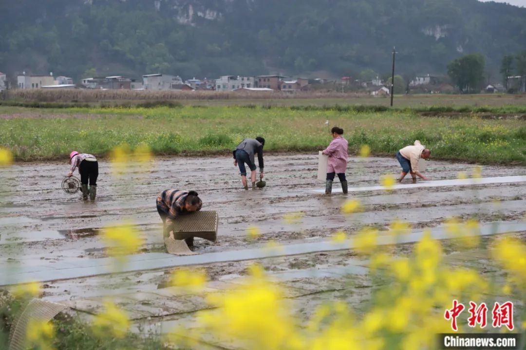 2024年3月20日,廣西柳州農(nóng)戶在春分節(jié)氣搶抓時(shí)間開(kāi)展育秧勞作。湯曉逵 攝