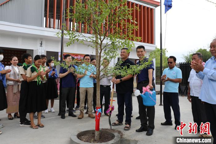 當(dāng)?shù)貢r(shí)間5月12日,在距離金邊以南約60公里的一個(gè)擁有125戶家庭、500余人口的小鄉(xiāng)村,柬埔寨民間社會組織聯(lián)盟論壇主席蓋里維希揮鏟添泥,中國和平發(fā)展基金會駐柬埔寨辦事處主任劉戰(zhàn)國提壺澆水,合力種植下一棵象征著中柬友誼的隆都花樹。