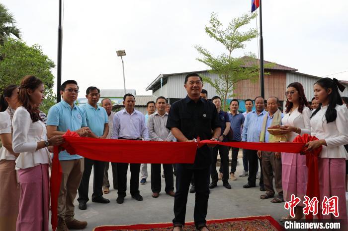 當(dāng)?shù)貢r(shí)間5月12日,柬埔寨民間社會組織聯(lián)盟論壇主席蓋里維希為新落成的村民中心剪彩。中新社記者 楊強(qiáng) 攝