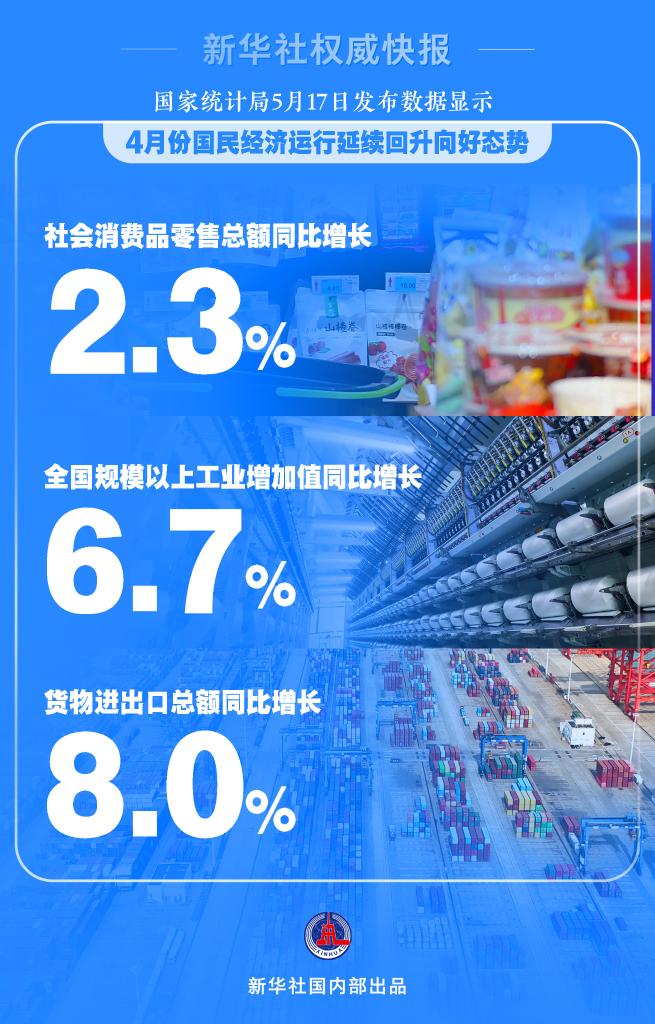 國家統(tǒng)計局17日發(fā)布的數(shù)據(jù)顯示,今年4月份,生產(chǎn)需求平穩(wěn)增長,就業(yè)物價總體向好,社會預(yù)期持續(xù)改善,高質(zhì)量發(fā)展扎實推進(jìn),國民經(jīng)濟運行總體穩(wěn)定,延續(xù)回升向好態(tài)勢。