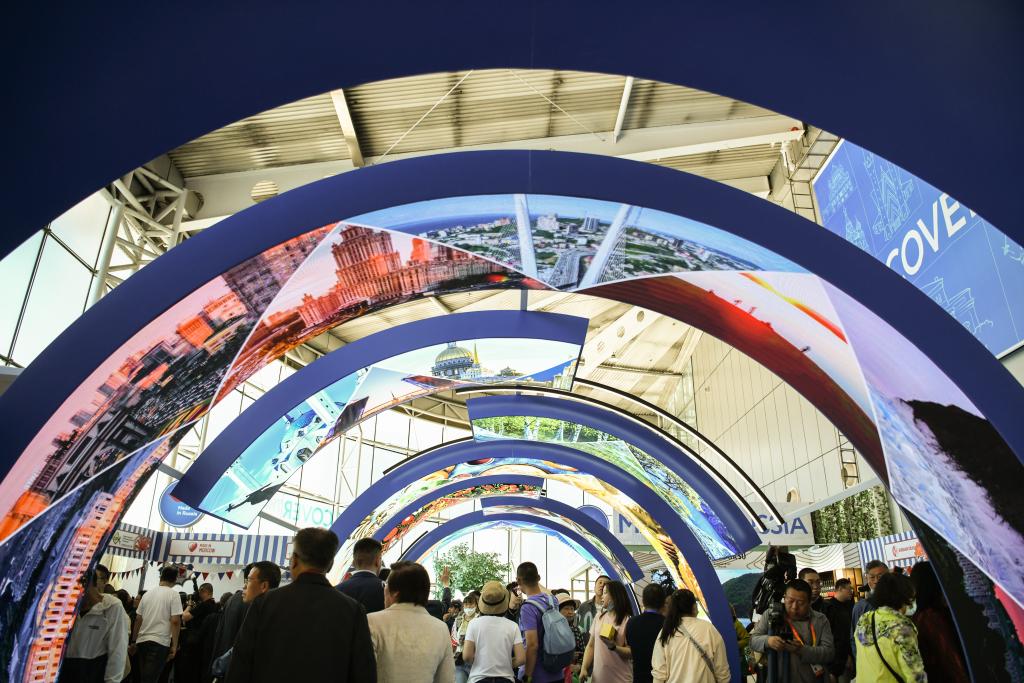 5月18日,參會(huì)者走進(jìn)在哈爾濱國際會(huì)展中心舉行的第八屆中俄博覽會(huì)展館。新華社記者 王松 攝