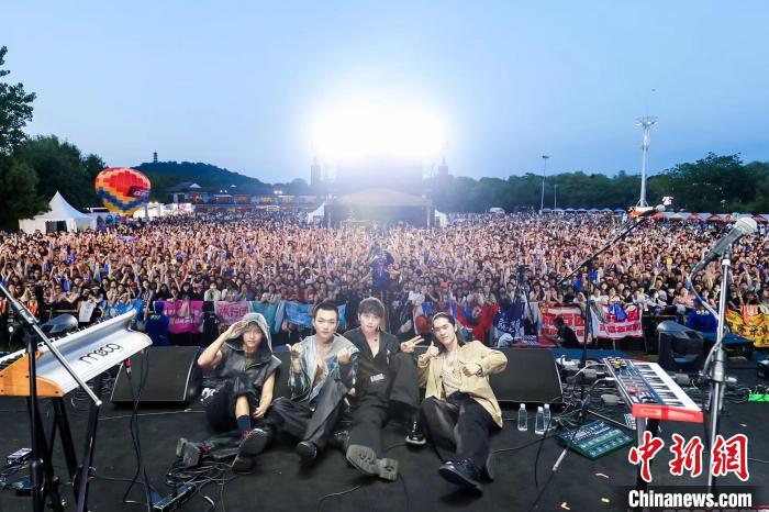 西施音樂節(jié)現(xiàn)場,觀眾為臺灣“八三夭”樂隊(duì)歡呼?!≈T暨臺辦供圖