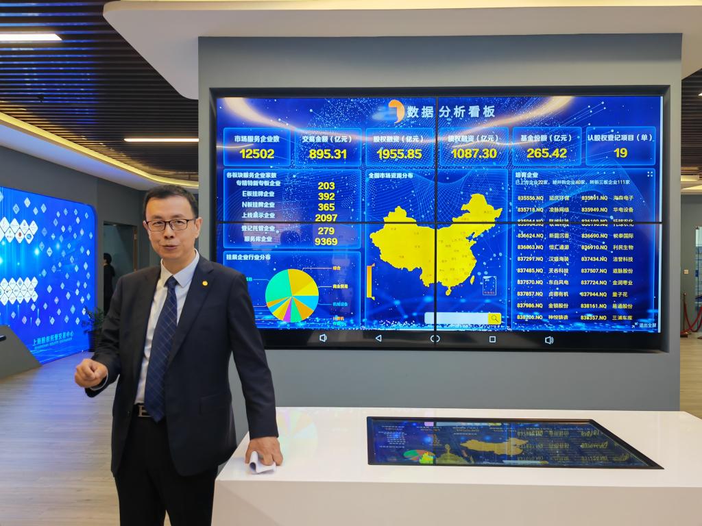 5月24日,上海股權(quán)托管交易中心黨委書記、總經(jīng)理徐軍介紹上海專精特新專板。新華社記者 桑彤 攝