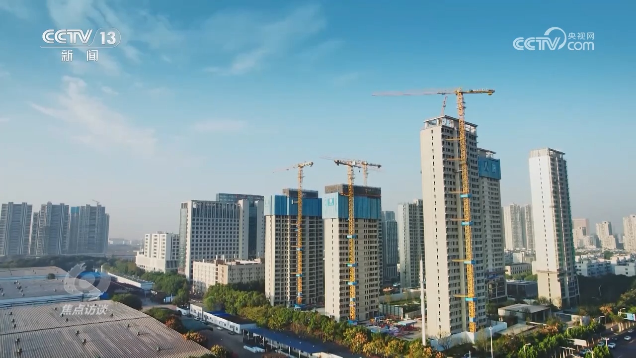 在湖北一家工廠,標(biāo)準(zhǔn)化施工構(gòu)件由工廠生產(chǎn)交付后,再由高空造樓機(jī)像拼積木一樣,將它們快速精準(zhǔn)吊裝。這樣裝配式一體化的施工方式,能讓單棟樓的總工期節(jié)約近兩個(gè)月。