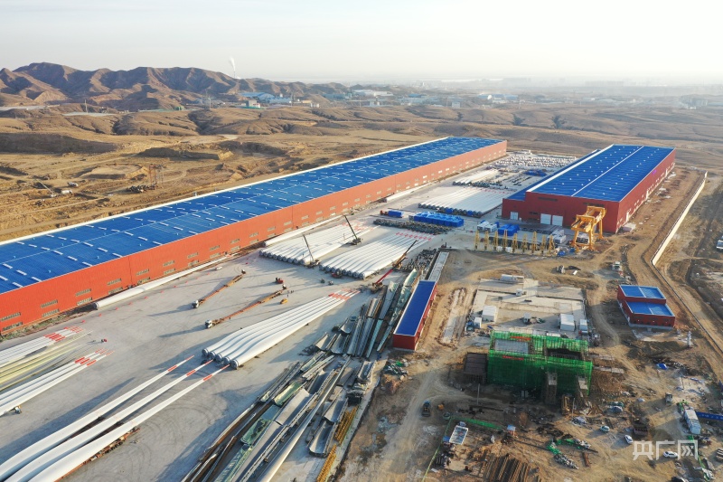 出廠的風(fēng)電葉片整裝待發(fā)(央廣網(wǎng)見習(xí)記者 邵玉琴 攝)