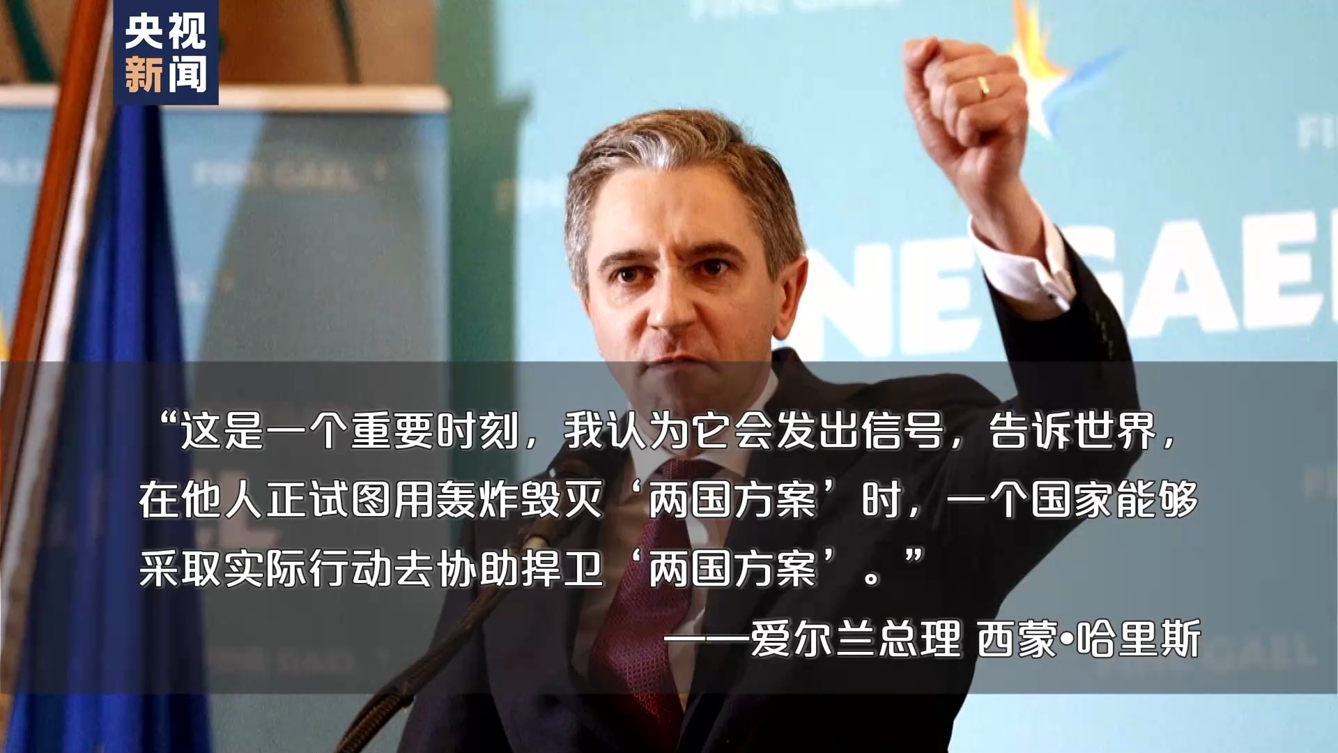 愛爾蘭總理 西蒙·哈里斯:我們說過承認(rèn)巴勒斯坦國的時(shí)刻越來越近了,現(xiàn)在這一時(shí)刻終于到了。這對愛爾蘭和巴勒斯坦來說都是歷史性的一天,重要的一天。