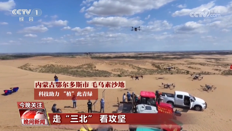 在內(nèi)蒙古毛烏素沙地,無人機(jī)飛播、機(jī)器人栽種正當(dāng)時,科技助力“植”此青綠。