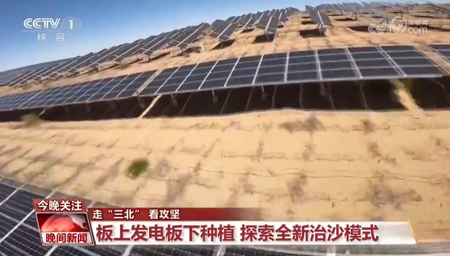 總臺記者 李欣蔓:治沙的腳步不但沒有停,還在不斷探索新的治沙模式?,F(xiàn)在我們看到的是鄂爾多斯一個已經(jīng)建好、并網(wǎng)發(fā)電的光伏項(xiàng)目,板上發(fā)電,板下種植,一個空間全方位利用。三重防線,構(gòu)建起了全新的生態(tài)治沙模式。有一個數(shù)據(jù)值得我們關(guān)注,這里的光伏項(xiàng)目占地39萬畝,與此同時,生態(tài)治理面積也將規(guī)劃完成39萬畝。在國家推進(jìn)光伏治沙項(xiàng)目開發(fā)建設(shè)的進(jìn)程中,我們看到越來越多的企業(yè)參與其中,在發(fā)展新能源產(chǎn)業(yè)的同時共同擔(dān)負(fù)起治沙的責(zé)任,為一片藍(lán)海,一片綠洲的建設(shè),貢獻(xiàn)更多的力量。