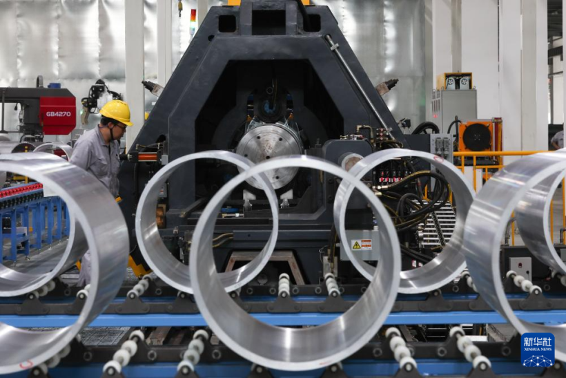 5月31日,一名工作人員在江蘇國富氫能技術裝備股份有限公司的儲氫設備生產車間內作業(yè)。新華社記者 楊磊 攝
