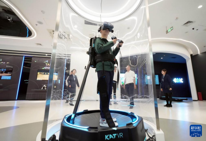 6月1日,昆山元宇宙產業(yè)園的元宇宙展示廳里,一名參觀者在體驗VR游戲。新華社記者 李尕 攝