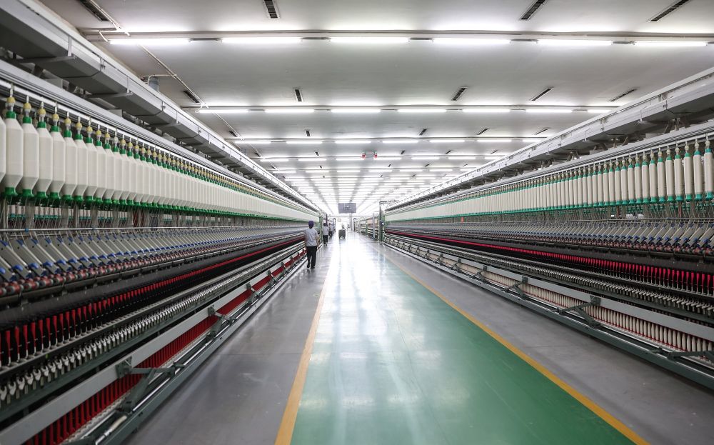 圖為無(wú)錫一棉紡織集團(tuán)有限公司的特高支緊密紡智能制造車間。新華社記者 楊磊 攝