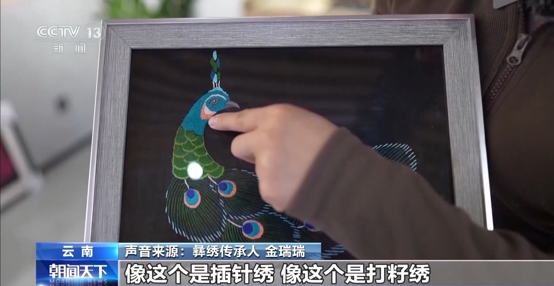 彝繡傳承人 金瑞瑞:像這個是插針繡,像這個是打籽繡。它的針法都是有很多種。