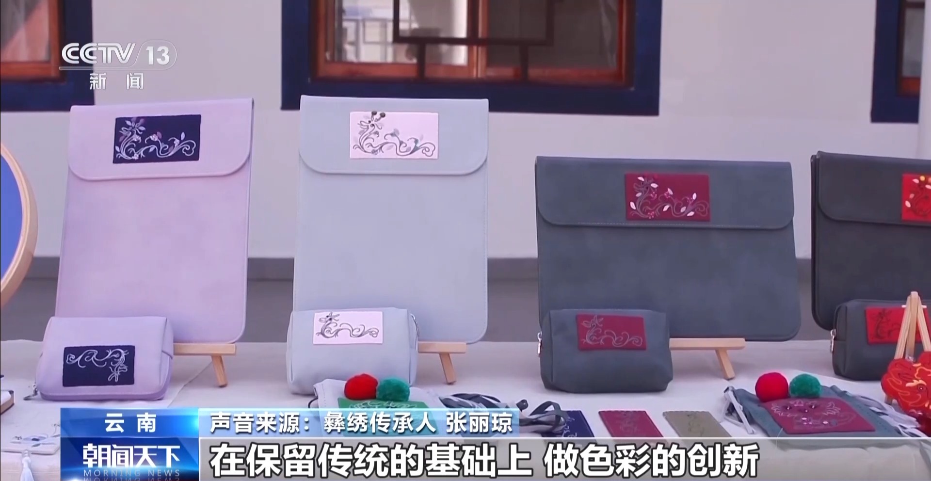 彝繡傳承人 張麗瓊:我們在做設(shè)計的時候,在保留傳統(tǒng)的基礎(chǔ)上,做色彩的創(chuàng)新。