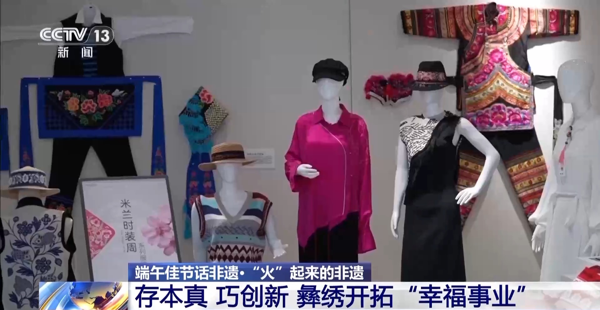 總臺記者 李騰飛:楚雄是全國兩個彝族自治州之一,這里有句話叫“十里不同天,隔山不同服”,說的就是彝繡的豐富與多樣。我身后就陳列展示著許多有代表性的彝繡作品。