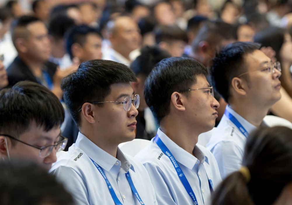 來自臺灣的青年們在第二十二屆海峽青年論壇開幕現(xiàn)場(6月14日攝)。新華社記者 魏培全 攝