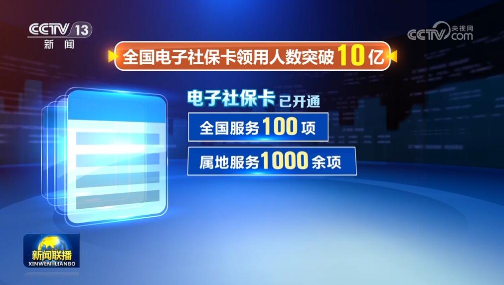 全國電子社保卡領(lǐng)用人數(shù)突破10億。電子社保卡已開通全國服務(wù)100項,屬地服務(wù)1000余項。