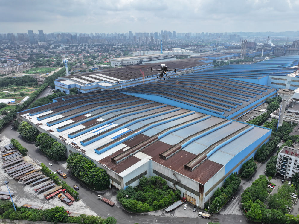 2024年6月13日,在湖南省湘潭市,無人機(jī)在湘潭鋼鐵集團(tuán)有限公司進(jìn)行智能巡檢(無人機(jī)照片)。無人機(jī)智能巡檢系統(tǒng)利用5G通信、北斗定位技術(shù)和“AI+機(jī)器視覺”等技術(shù),針對(duì)人員點(diǎn)檢不便的問題,對(duì)廠內(nèi)多場(chǎng)景進(jìn)行無人機(jī)定期智能巡檢,實(shí)現(xiàn)高爐測(cè)溫、電力絕緣端子巡檢等工作。 新華社記者 陳澤國 攝