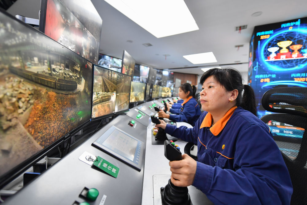 2024年6月13日,在位于湖南省湘潭市的湘潭鋼鐵集團(tuán)有限公司五米寬厚板廠智慧中心,工作人員在進(jìn)行遠(yuǎn)程行車操作。五米寬厚板廠智慧中心利用超融合、虛擬化、5G傳輸以及分布式計(jì)算和存儲(chǔ)等技術(shù),將五米板煉鋼、軋鋼和熱處理全工序的控制和二級(jí)、三級(jí)系統(tǒng)進(jìn)行整合,改善工人的工作環(huán)境,提高生產(chǎn)的自動(dòng)化程度和效率。 新華社記者 陳澤國 攝