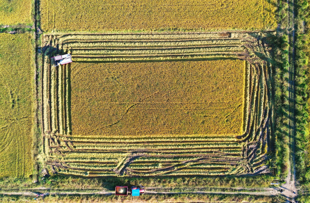 2022年10月11日,在江西省南昌縣大田農(nóng)社,無人駕駛收割機(jī)在收割成熟的水稻。無人駕駛收割機(jī)裝有精準(zhǔn)導(dǎo)航系統(tǒng),提高了收獲精度,降低了糧食損耗。 新華社記者 萬象 攝