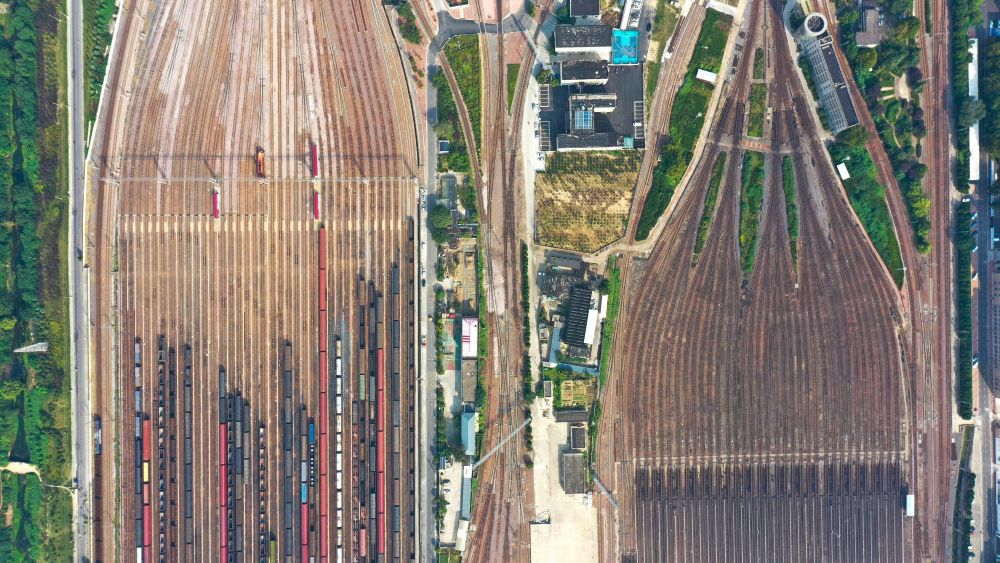 這是2023年9月拍攝的鄭州北站編組場(chǎng)(無(wú)人機(jī)照片)。新華社記者 殷剛 攝