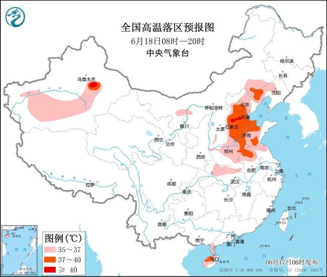 預(yù)計(jì)18日白天,新疆南疆盆地、京津冀、山東中西部、河南東部、安徽北部、遼寧西南部等地的部分地區(qū)將有37~39℃高溫天氣,局地可達(dá)40℃及以上。