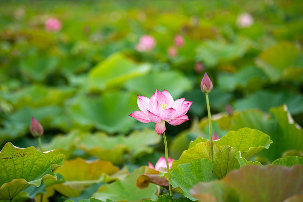 這是6月20日拍攝的寧波市江北區(qū)外漕村百畝荷田內的荷花。新華社記者 江漢 攝