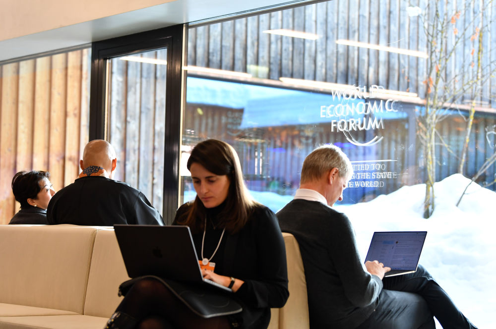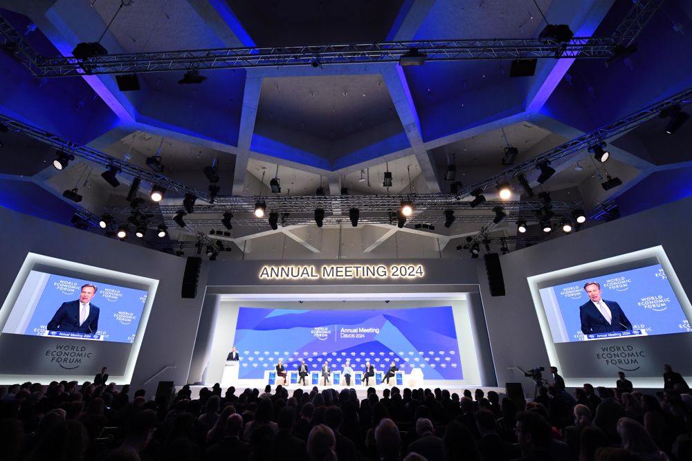 ↑在瑞士達沃斯舉行的世界經(jīng)濟論壇2024年年會現(xiàn)場。
