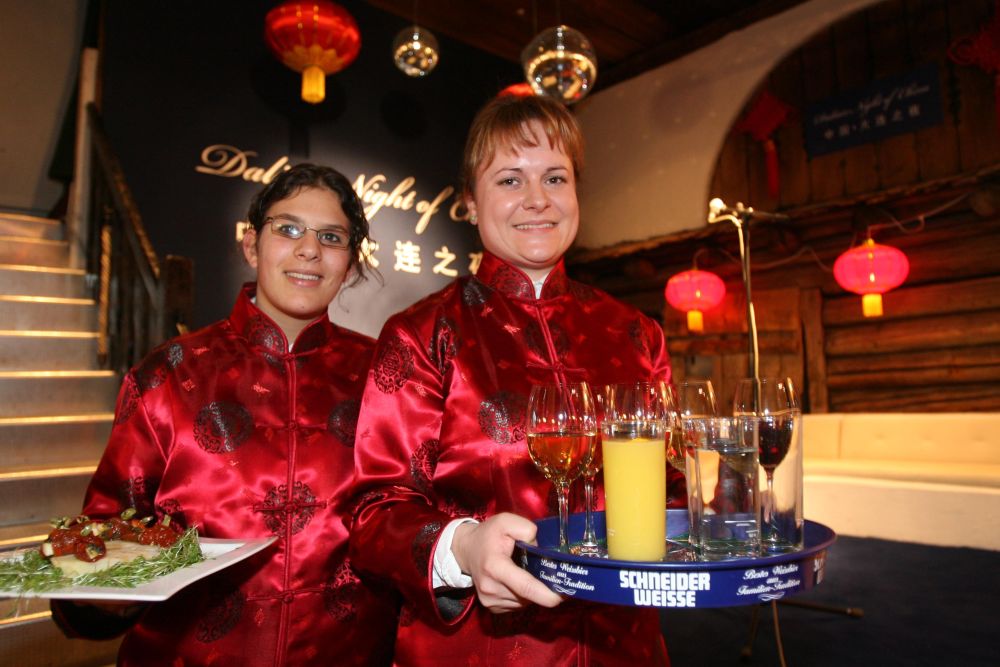 2007年1月25日,在瑞士達沃斯舉行的“中國大連之夜”上,當?shù)嘏諉T穿上了中國傳統(tǒng)服裝。