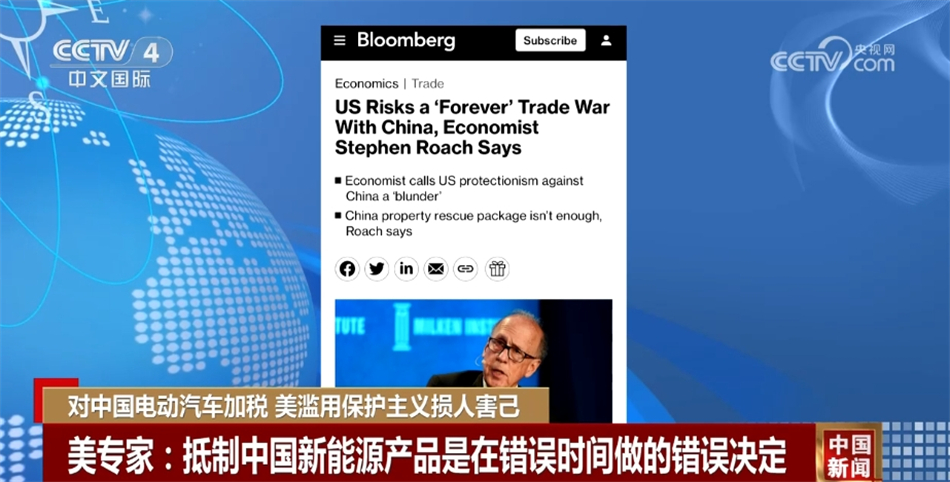 美國耶魯大學(xué)高級研究員斯蒂芬·羅奇稱:“我認(rèn)為這是美國選舉年由政治驅(qū)動的巨大戰(zhàn)略錯誤,對中國這樣一個在生產(chǎn)零碳新能源產(chǎn)品方面具有比較優(yōu)勢的國家,采取貿(mào)易保護(hù)主義立場,在我看來,這可能是一個歷史性的錯誤。零碳替代能源產(chǎn)品是受到氣候變化影響的世界所迫切需要的,這恰恰是在錯誤的時(shí)間做了錯誤的事?!?/p>